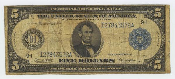 1914 FIVE DOLLAR FEDERAL RESERVE NOTE