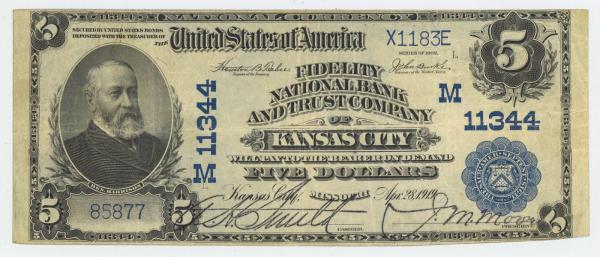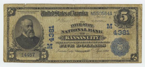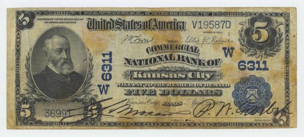 1902 FIVE DOLLAR NATIONAL CURRENCY KANSAS CITY