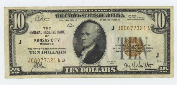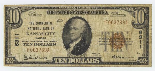 1929 TEN DOLLAR NATIONAL CURRENCY KANSAS CITY