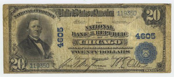 1902 TWENTY DOLLAR NATIONAL CURRENCY CHICAGO