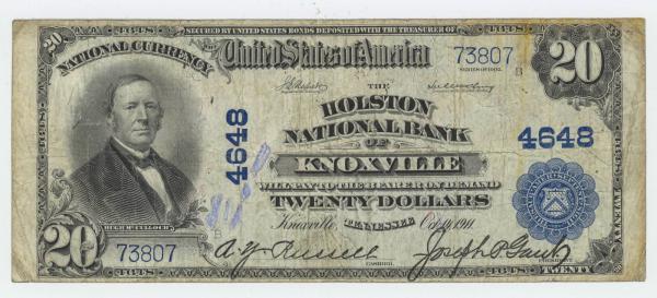 1902 TWENTY DOLLAR NATIONAL CURRENCY KNOXVILLE