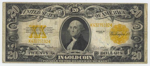 1922 TWENTY DOLLAR GOLD CERTIFICATE
