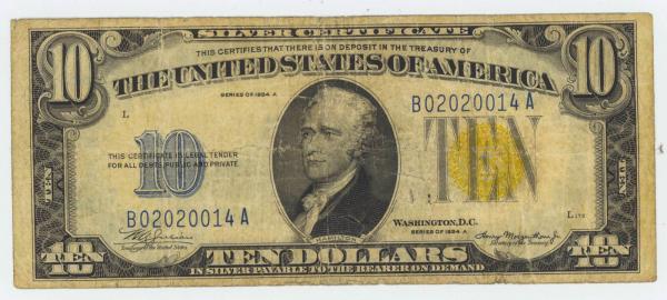 1934 TEN DOLLAR SILVER CERTIFICATE