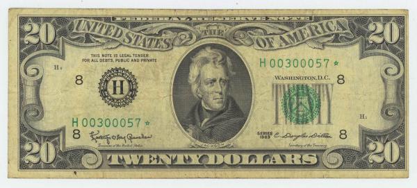 1963 TWENTY DOLLAR FEDERAL RESERVE STAR NOTE