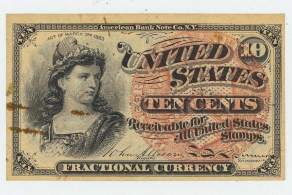 A PAIR OF TEN CENT FRACTIONAL POSTAGE CURRENCY