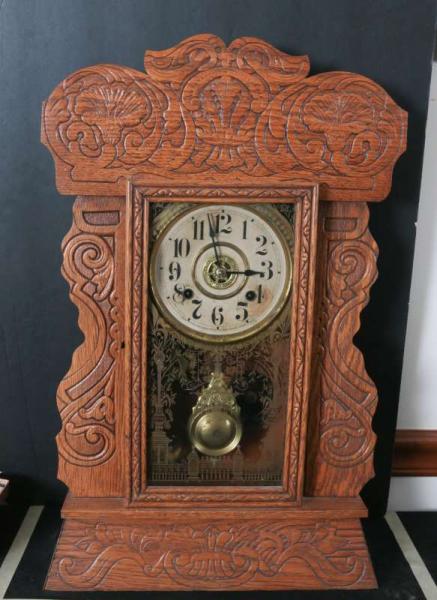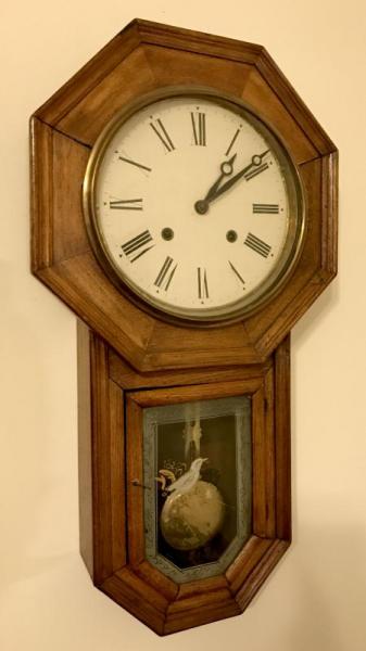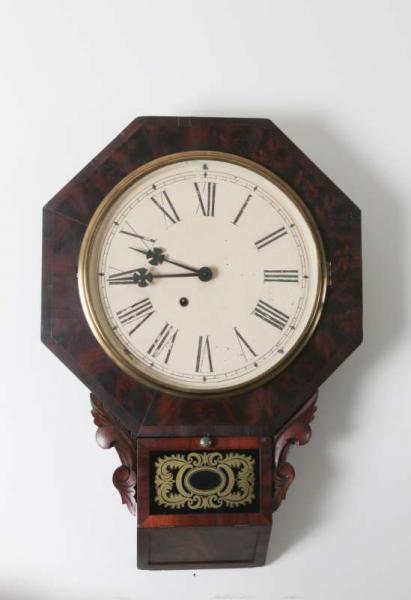 AN ANTIQUE OCTAGON DROP HANGING WALL CLOCK