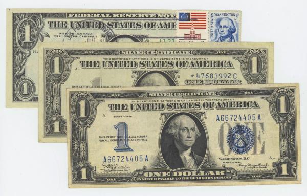 FIRST DAY ISSUE AND SILVER CERTIFICATE $1 NOTES
