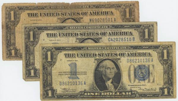 THREE ODD BACK $1 SILVER CERTIFICATES
