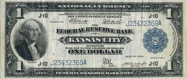 1914 TEN DOLLAR FEDERAL RESERVE NOTE KANSAS CITY