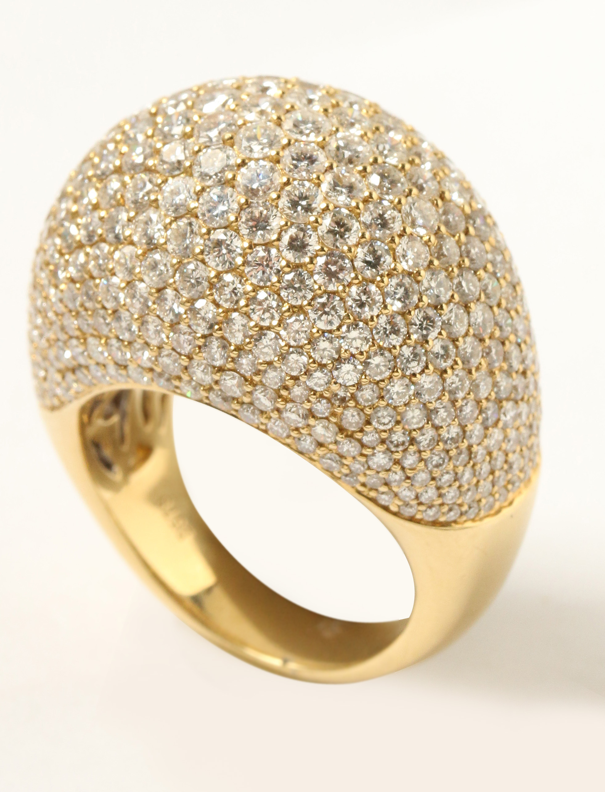 A high dome design encrusted with pav?diamonds that range in size from .01 carats to .06 carats in size. The inside of the mounting features an open work comfort fit design of interlocking hearts. Ring size 7 and weight of 16 grams. This and 29 other designated lots in this catalog were among Joseph's retail shop inventory and must be offered subject to Missouri sales tax regulations.