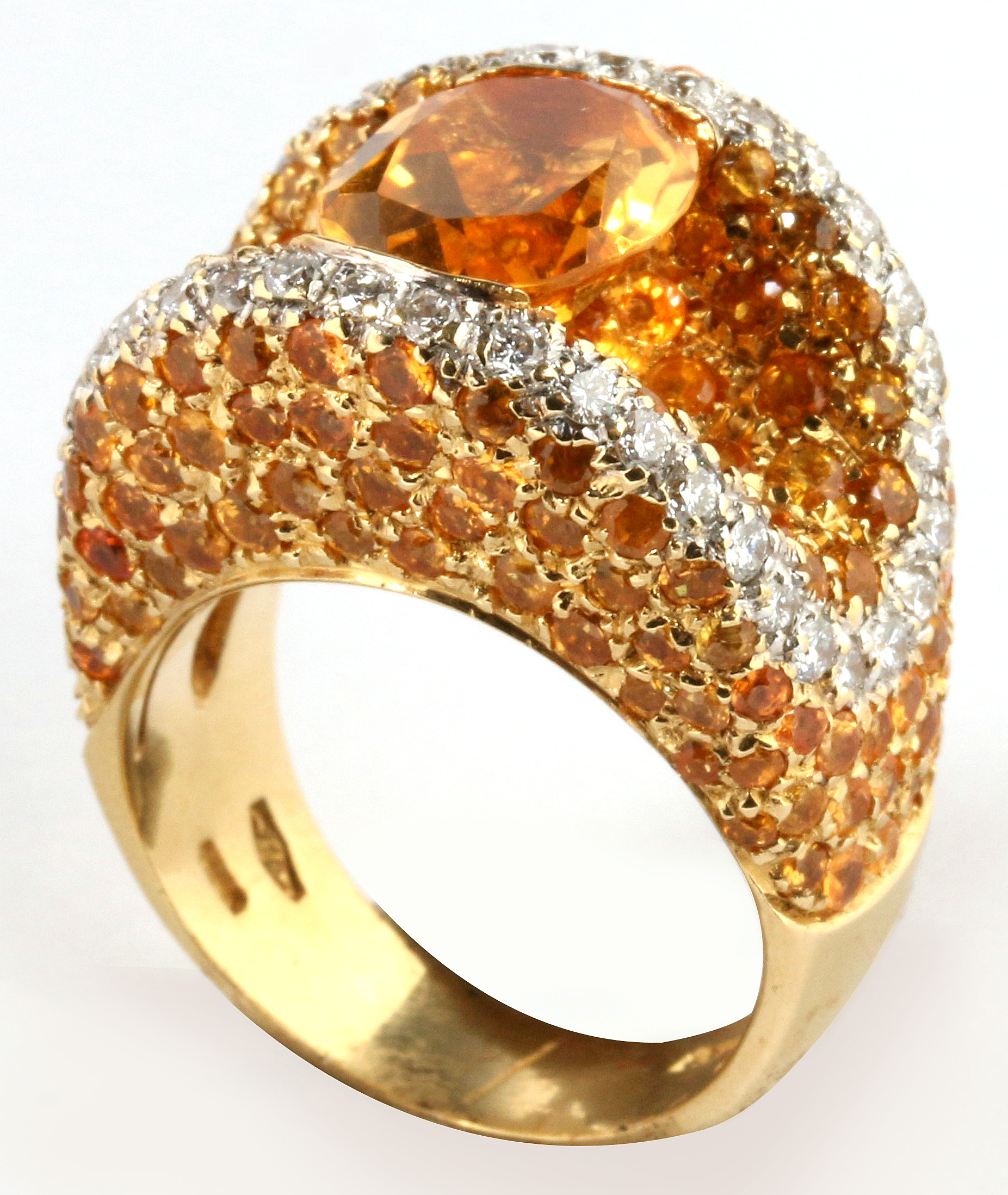 Home / Joseph Earl Candioto Estate Auction / A CITRINE & DIAMOND ENCRUSTED 18K GOLD COCKTAIL RI