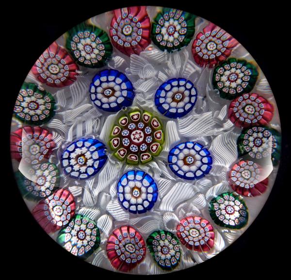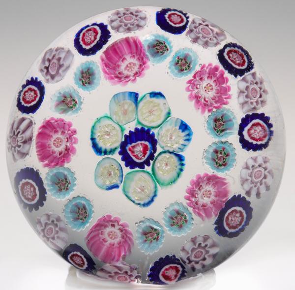 AN ORIENT AND FLUME CLOSEPACK MILLEFIORI PAPERWEIGHT