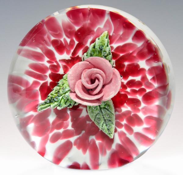 A RARE ST. CLAIR PAPERWEIGHT WITH PINK CERAMIC ROSE