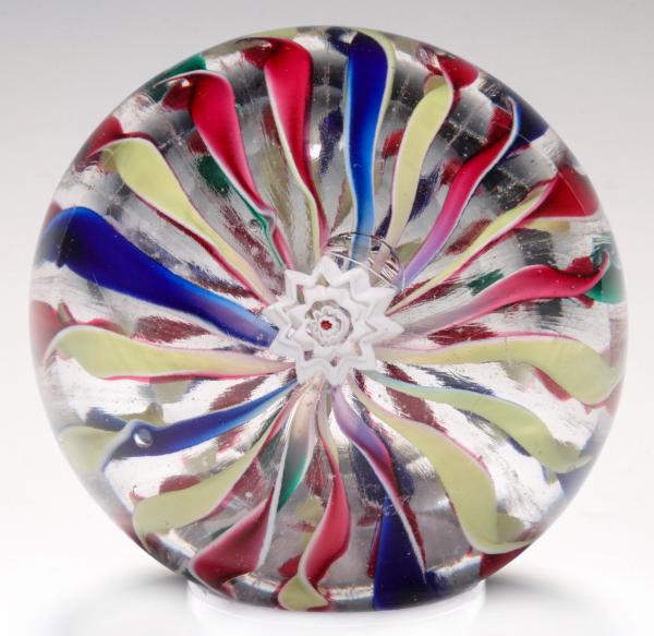 ANTIQUE NEW ENGLAND GLASS RIBBON CROWN PAPERWEIGHT