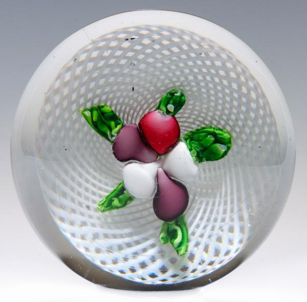 A 1994 PERTHSHIRE PAPERWEIGHT WITH PANSY ON MUSLIN