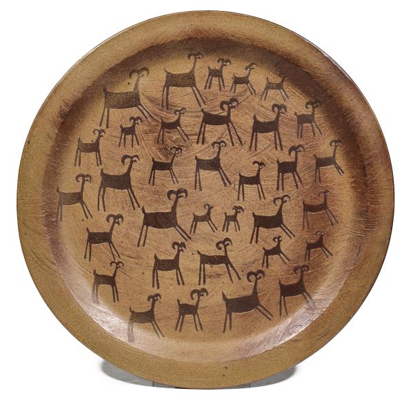 KEN FERGUSON (1938-2005) SALT FIRED ADAM & EVE CHARGER
